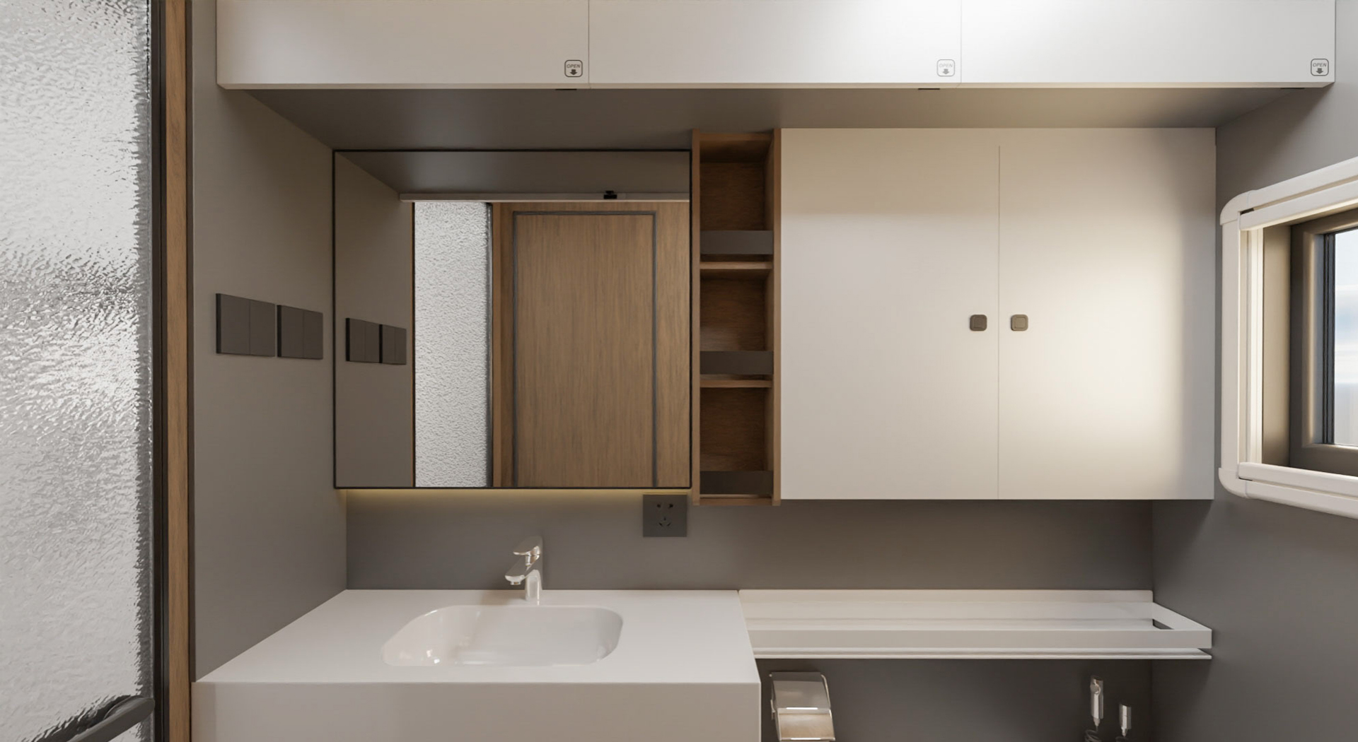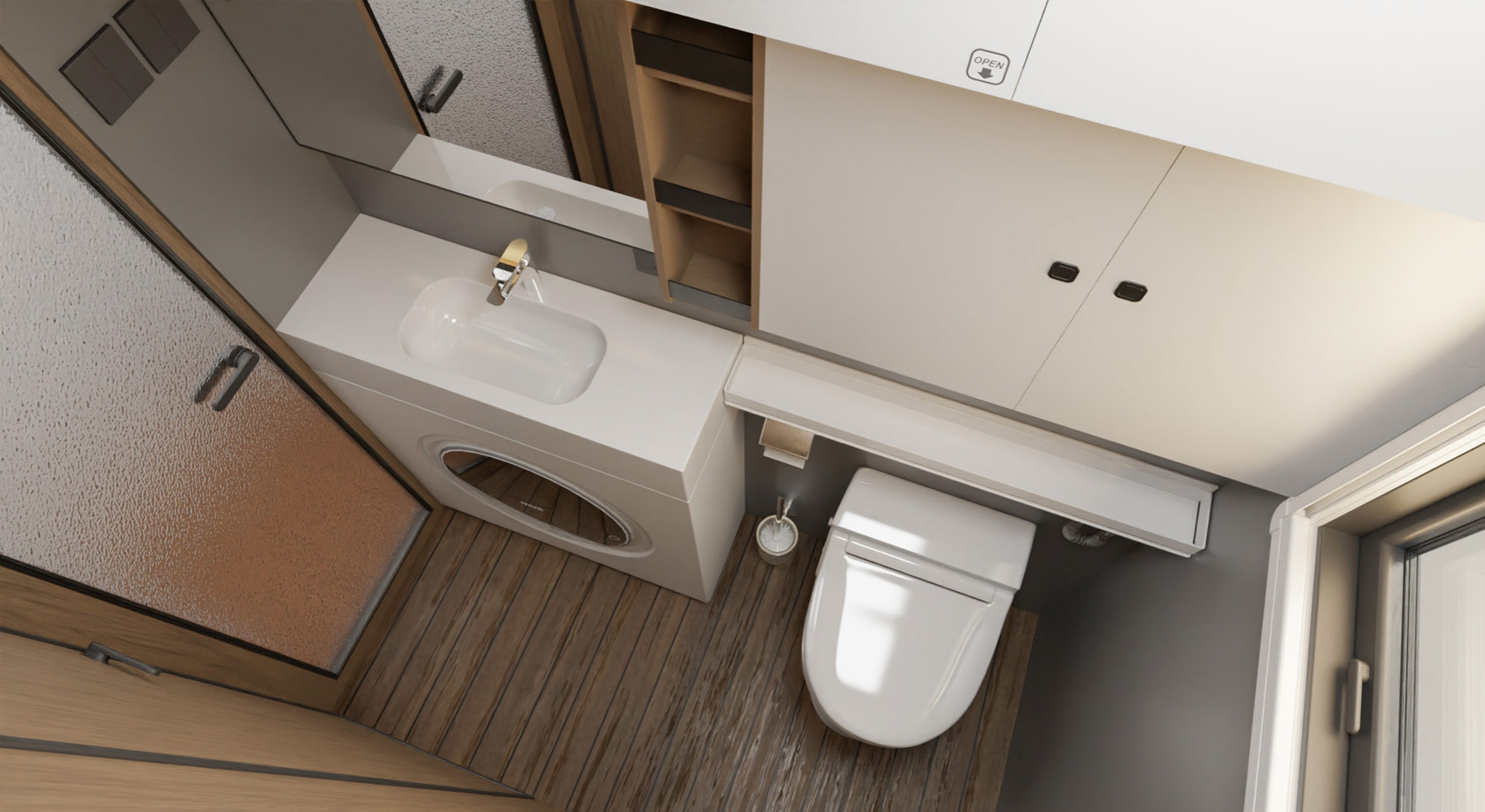 | 卫浴系统 | ■ 干湿分离浴室卫生间 ■ 房车专用进口赛特福德马桶 ■ 德国汉斯格雅浴室花洒 ■ WINIA壁挂洗烘一体洗衣机 ■ 化妆镜 ■ 洗手盆 ■ 进口多美达专用房车排气扇 |