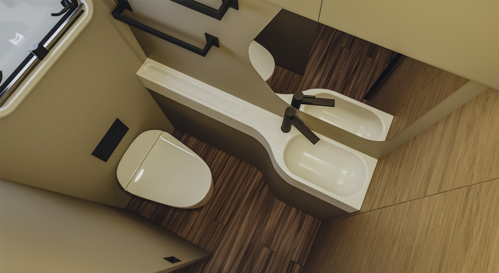 | 洗手间结构 | 洗手盆 冷热水龙头 花洒 塞特福德C263-CS,塑料,电动 置物架 镜子 |