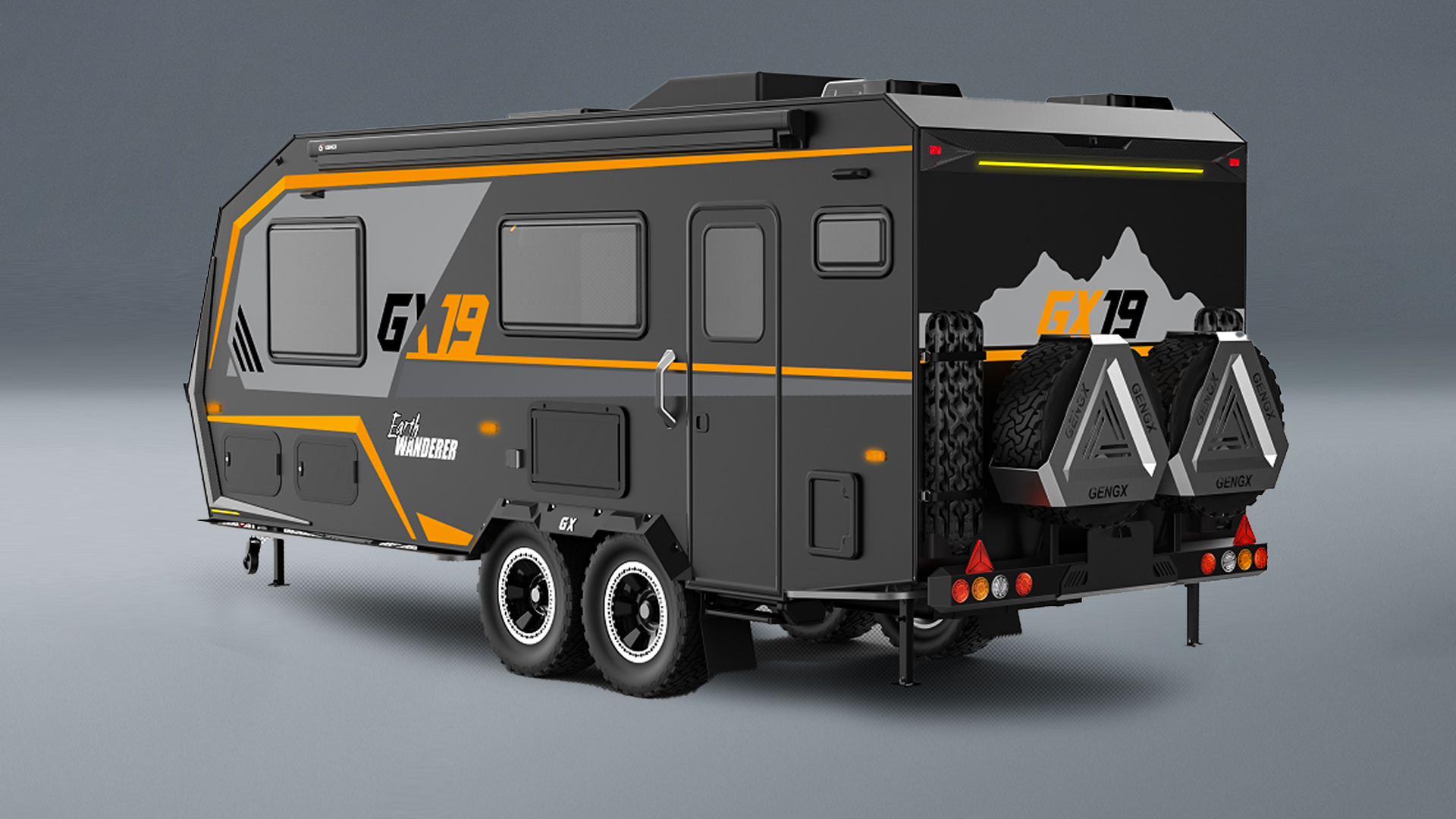 配备储物箱、抽拉式厨房、遮阳棚、室外花洒、吧台、220V取电口、兵工铲等等