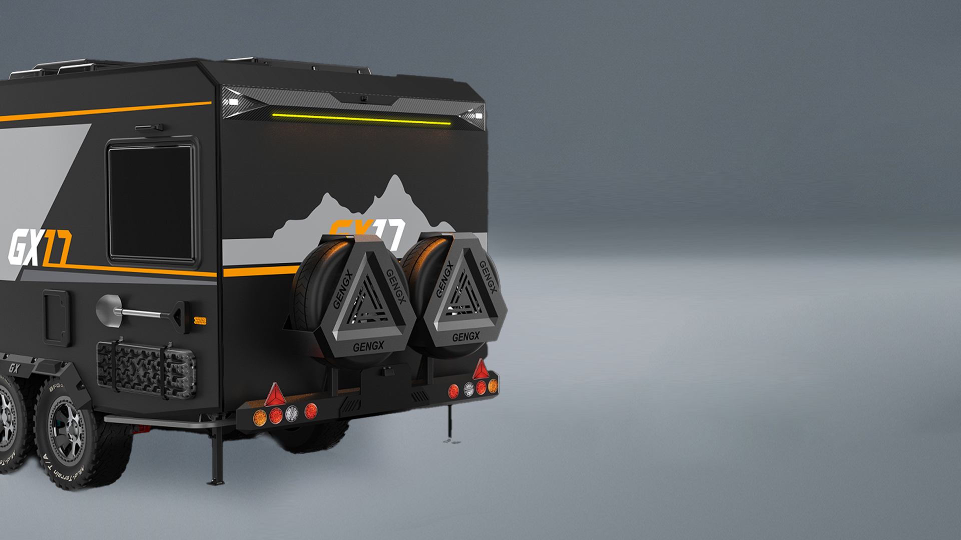 配备储物箱、抽拉式厨房、遮阳棚、室外花洒、吧台、220V取电口、兵工铲等等