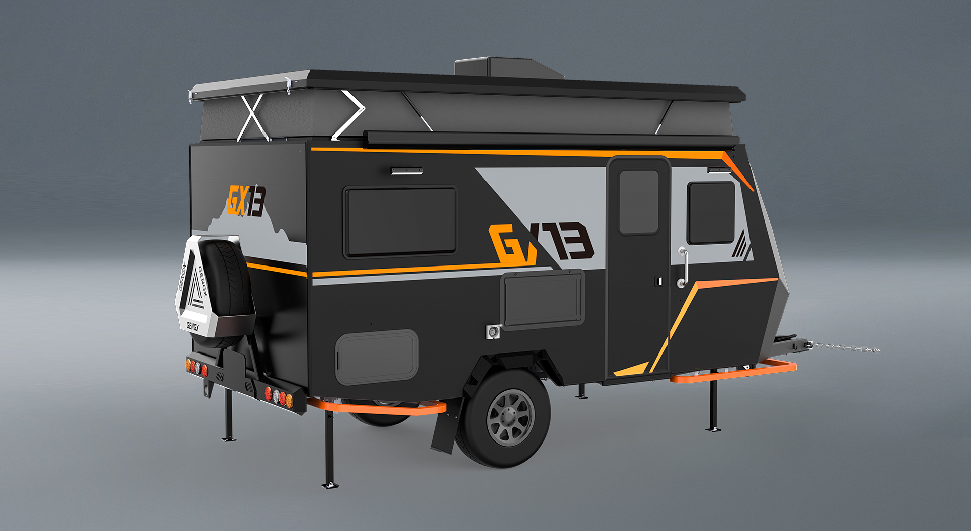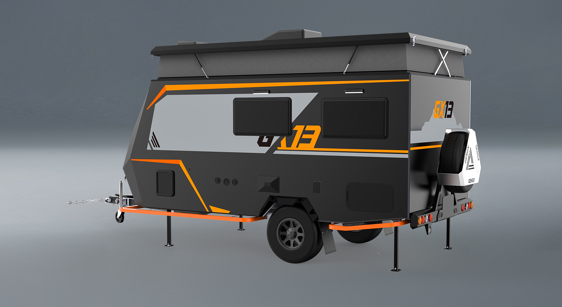 | 底盘 | 单层底盘低合金高强钢Q345 1对独立悬挂 2*(20-140-325 )螺旋弹簧 2x减震胶墩 4*(500-310-16)减震器 3x 16*8铝轮圈(包括1个备胎) 3*265/75R16轮胎(1个备胎) |